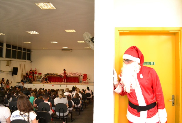 Crédito: Divulgação | Visita surpresa do Papai Noel foi uma das atrações promovidas pelos alunos na Etec de Vargem Grande do Sul