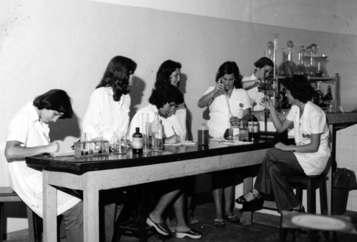 Laboratório de Química da Etec Carlos de Campos, localizada no bairro do Brás, em foto de 1977 | Foto: Acervo CPS