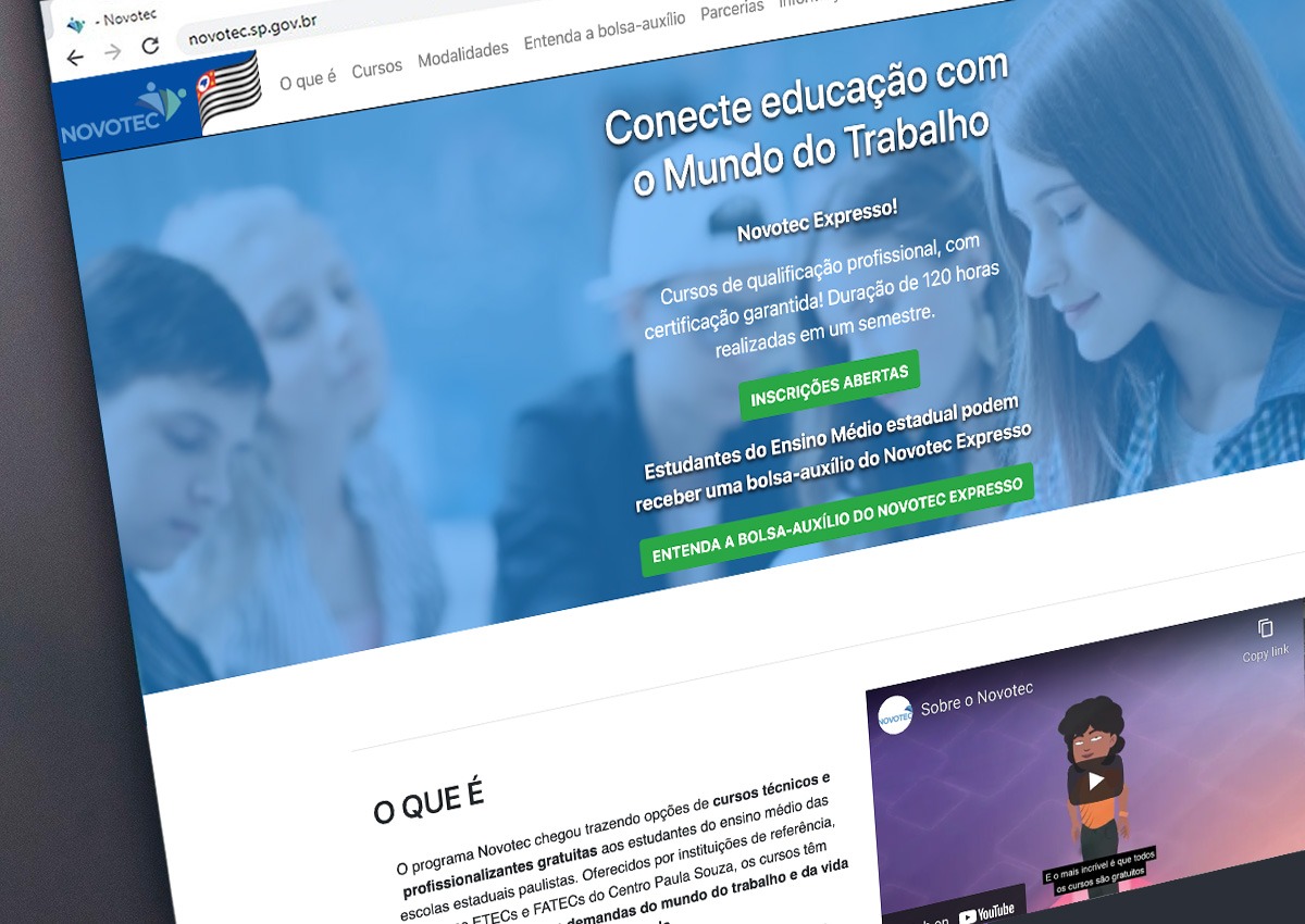 O Novotec Expresso, uma das modalidades do programa Novotec, disponibiliza cursos de qualificação profissional, no contraturno, para jovens de até 24 anos. Com duração de 120 horas, as capacitações são oferecidas com o apoio de Etecs, Fatecs e outras instituições. São 38 opções em áreas como Gestão e Negócios, Meio Ambiente, Produção Cultural e Design, e Tecnologia da Informação e Comunicação. As aulas ocorrem em formato presencial ou remoto, conforme disponibilidade local e escolha do participante. Os cursos têm previsão de início em 14 de março.