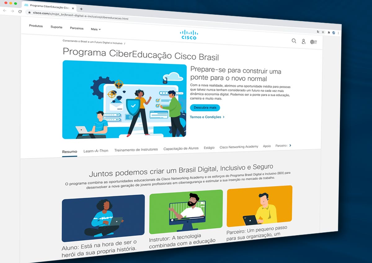 Estudantes de Escolas Técnicas (Etecs) e Faculdades de Tecnologia (Fatecs) do Estado de São Paulo, bem como de outras instituições de ensino de todo o País, podem se inscrever gratuitamente para o Programa CiberEducação da Cisco do Brasil. A iniciativa oferece capacitação profissional em segurança digital e os interessados devem fazer a inscrição até dia 8 de março pela internet.