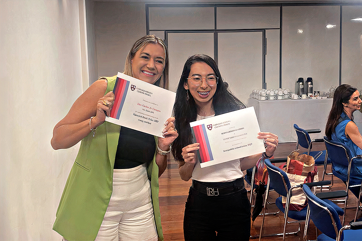 Ao lado da professora Luciana Junqueira, Ester exibe o certificado da Harvard Book Prize | Foto: Divulgação