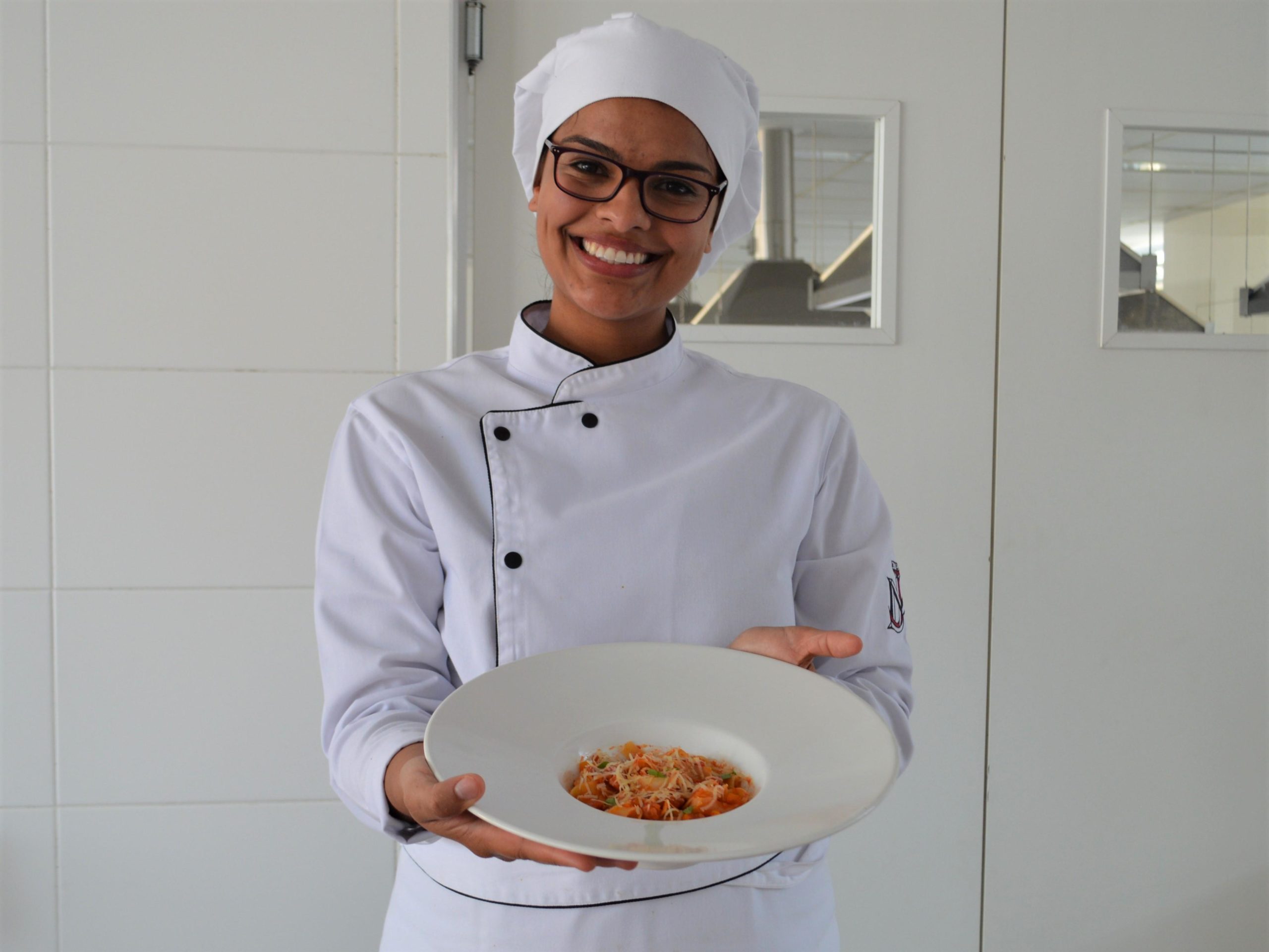 “Em casa sempre comemos linguiça com abóbora, então, coloquei esses ingredientes na receita. A cachaça dá o diferencial”, conta a estudante. “Acredito que (a viagem à Itália) será uma experiência única, que vai me agregar conhecimento e cultura.” A jovem está no segundo semestre do curso técnico e pretende seguir carreira na gastronomia. Mariane é formada em Relações Internacionais, mas percebeu que sua verdadeira paixão está nas panelas.