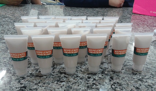 As estudante Ana Carolina Balmante, Márcia Rosa Zômpero, Marinete Vieira Seles e Natália Mattos Lista, do curso técnico em Farmácia da Escola Técnica Estadual (Etec) Professor Massuyuki Kawano, de Tupã, desenvolveram uma loção repelente à base de óleo essencial de cravo. Um dos objetivos do projeto é contribuir com a prevenção à dengue, por meio de um produto mais barato e menos tóxico que os normalmente comercializados. As alunas pretendem também sensibilizar a população a adotar medidas para evitar a doença.