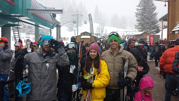 Crédito: Divulgação | Com os novos amigos que fez durante o intercâmbio, Gustavo, à direita, foi conhecer a neve na cidade de Ruidoso, nos EUA