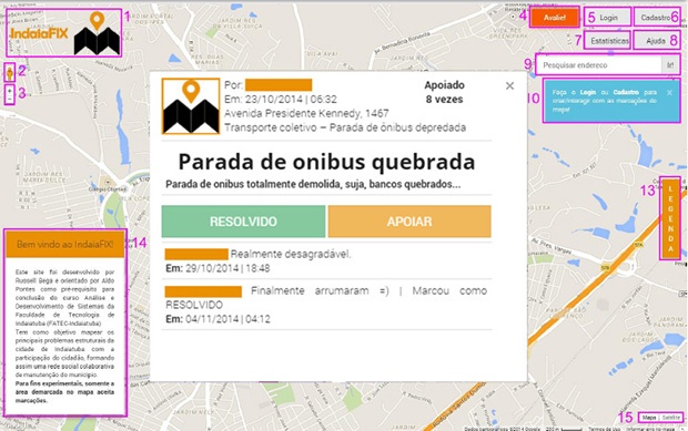 O sistema conta com 37 situações que podem ser marcados pelos usuários no mapa. As observações ficam abertas para comentários de outros internautas e há um botão para acompanhamento do status de resolução do problema.