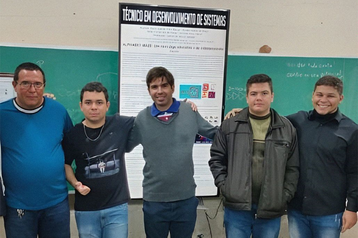 Da esquerda para a direita: Sandro, Vinícius, Victor, Kevin e o professor Gabriel | Foto: Divulgação