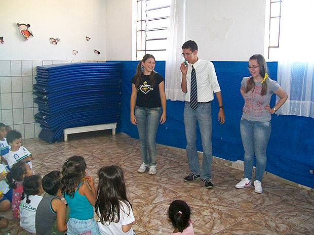 Estudantes coordenam atividade com crianças na creche Nosso Lar Crédito: Divulgação