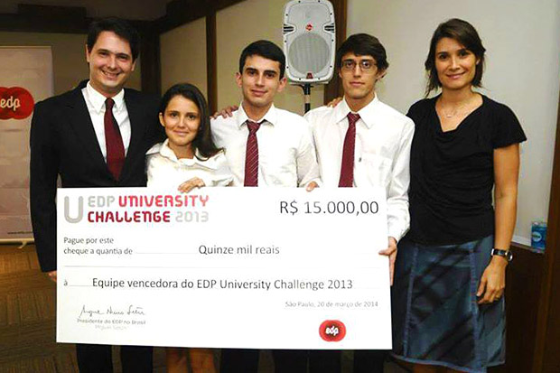 Os estudantes Ailton Junior dos Santos, Bruno Gonçalves e Andresa Marcondes da Silva, da Faculdade de Tecnologia do Estado (Fatec) João Mod, de Guaratinguetá, conquistaram o 1º lugar na 4ª edição do EDP University Challenge, um concurso aberto a alunos das áreas de gestão, marketing, estratégia e comunicação de todas as universidades brasileiras.