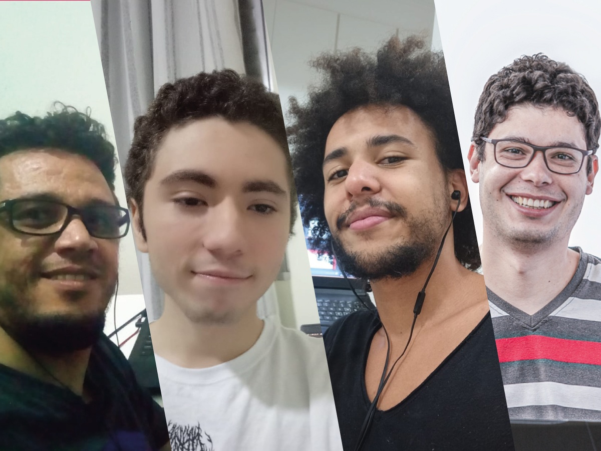A partir da esquerda, os estudantes Marco, Thiago, Yehoshua e o professor Leandro, da equipe vencedora da maratona l Foto: Divulgação