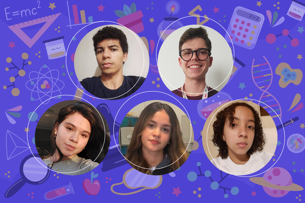 A partir do alto, em sentido horário, Pablo, Gabriel, Gabriela, Rebeca e Sophia: campeões de química | Foto: Divulgação