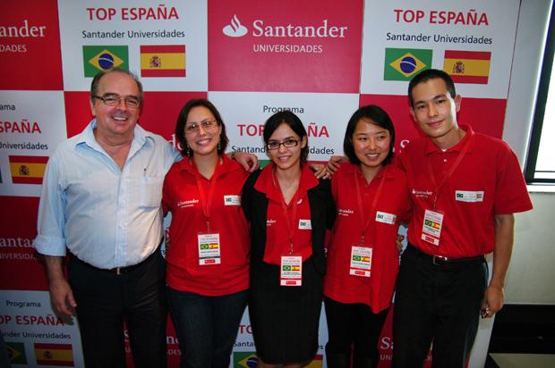 Três estudantes e uma professora das Faculdades de Tecnologia (Fatecs) do Estado de São Paulo ganharam bolsas de estudo do programa Top Espanha, promovido pelo banco Santander. Sulamita Queiroga, aluna da Fatec Guarulhos; Lucas Hissao, da Fatec Santo André; Evelin Saizaki, da Fatec São Paulo; embarcaram nesta sexta-feira, 7, para a Universidade de Salamanca, na Espanha, onde vão participar de um curso de três semanas sobre língua e cultura espanholas. O objetivo do Top Espanha é promover o intercâmbio cultural de estudantes e professores em diferentes áreas do conhecimento.