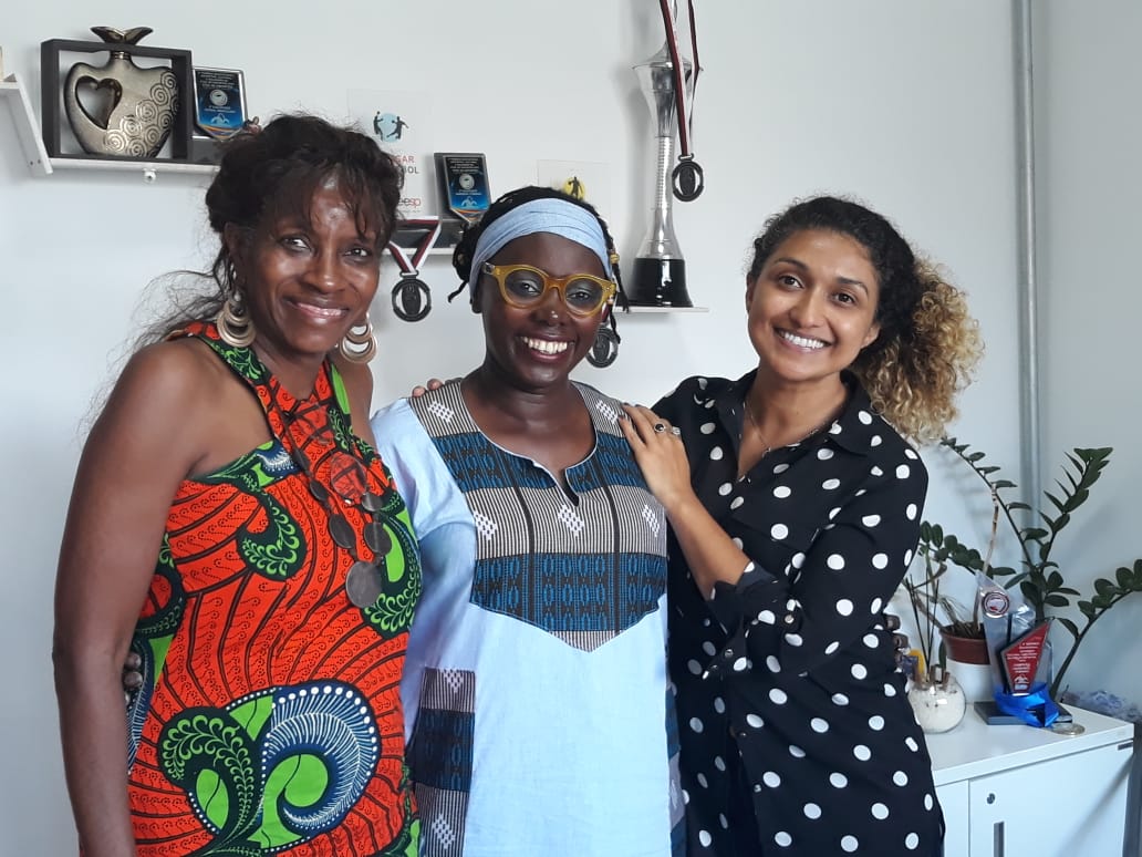 A partir da esquerda: a diretora da Etec, Eliane Malteze, Mariéme Jamme e Viviane Duarte, criadora do Plano de Menina l Foto: Divulgação