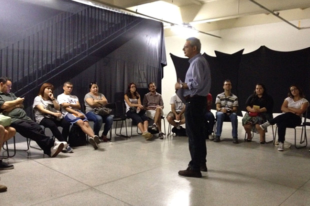 “O mercado está demandando pessoas com formação em mídias sociais”, afirmou Gilberto Dimenstein a um grupo de cerca de 30 pessoas, entre alunos aprovados e interessados presentes ao CCJ. Segundo ele, a ideia do projeto, em parceria com o Centro Paula Souza, é sempre trazer pessoas que estão no mercado de trabalho para conversar com os estudantes.