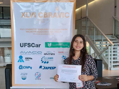 Pesquisa de Emily competiu com trabalhos de alunos de graduação e pós, conquistando prêmio no Congresso Brasileiro de Aplicações de Vácuo na Indústria e na Ciência