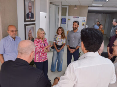 Felício Ramuth e Stephanie Costa foram recebidos pelo diretor-superintendente Clóvis Dias, o vice Maycon Geres, e o assessor de Relações Institucionais