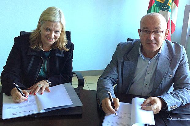 Laura Laganá e o diretor da Tknica Iñaki Mujika assinam termo de cooperação. / Foto – Divulgação.