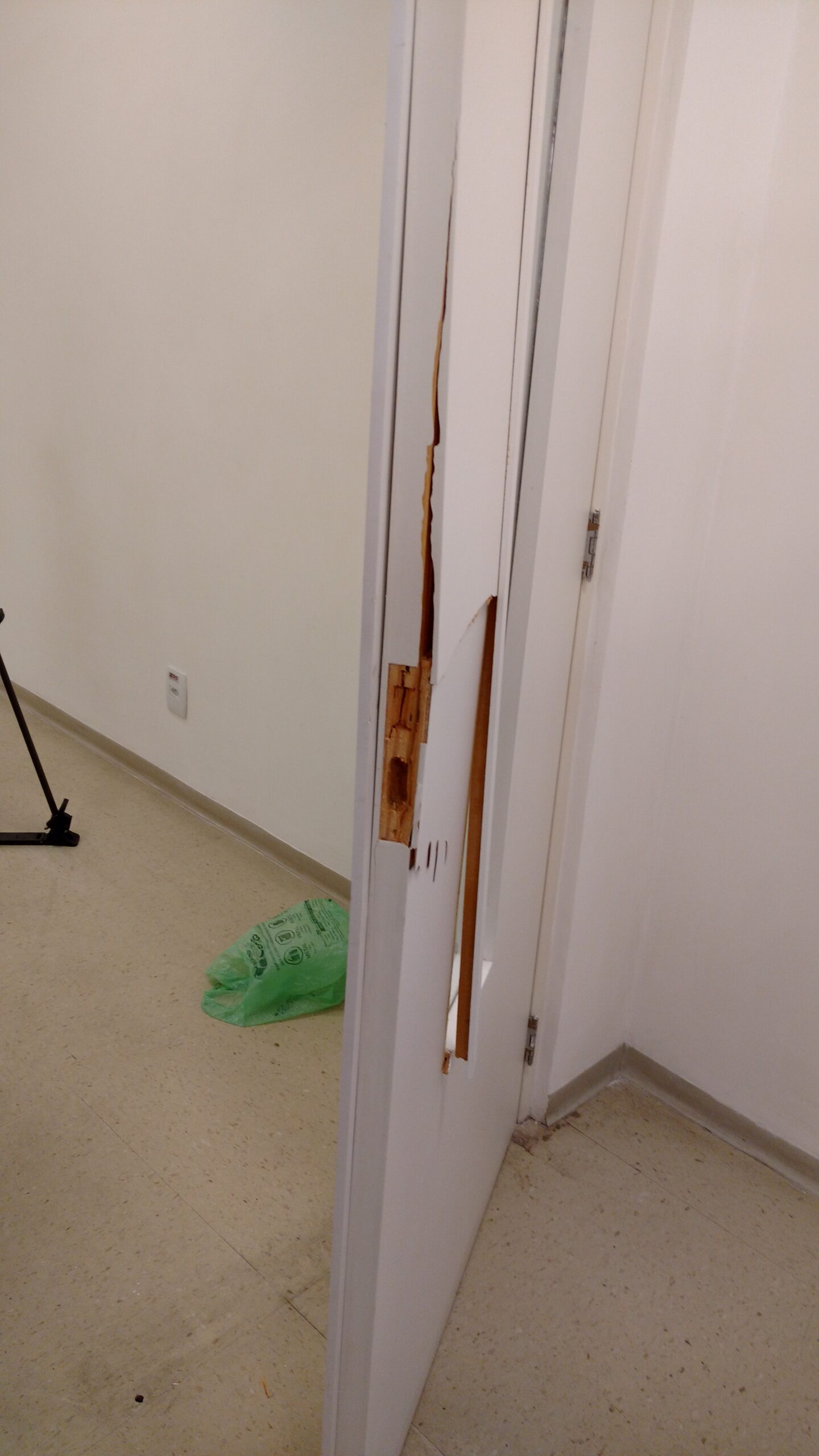 Avariaram portas, móveis e equipamentos, arrastaram cadeiras e mesas para montar barricadas, arrombaram gavetas e armários, reviraram salas, colaram telefones e computadores às mesas e utilizaram indevidamente equipamentos de segurança, como extintores e mangueiras de combate a incêndios.