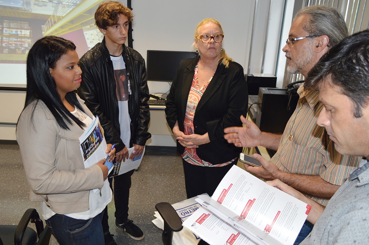 Uma equipe de representantes das Escolas Técnicas Estaduais (Etecs) de Artes, Esportes e Jornalista Roberto Marinho participou nesta sexta-feira, 15, da 2ª Feira de Profissões da Companhia do Metropolitano de São Paulo (Metrô-SP). Realizado na sede da Universidade Corporativa do Metrô (UniMetro), próximo à estação Jabaquara, o evento reuniu diferentes instituições de ensino e profissionais da área educacional com o objetivo de prestar orientação vocacional a um público de cerca de 500 jovens aprendizes, estagiários e filhos de funcionários da companhia.