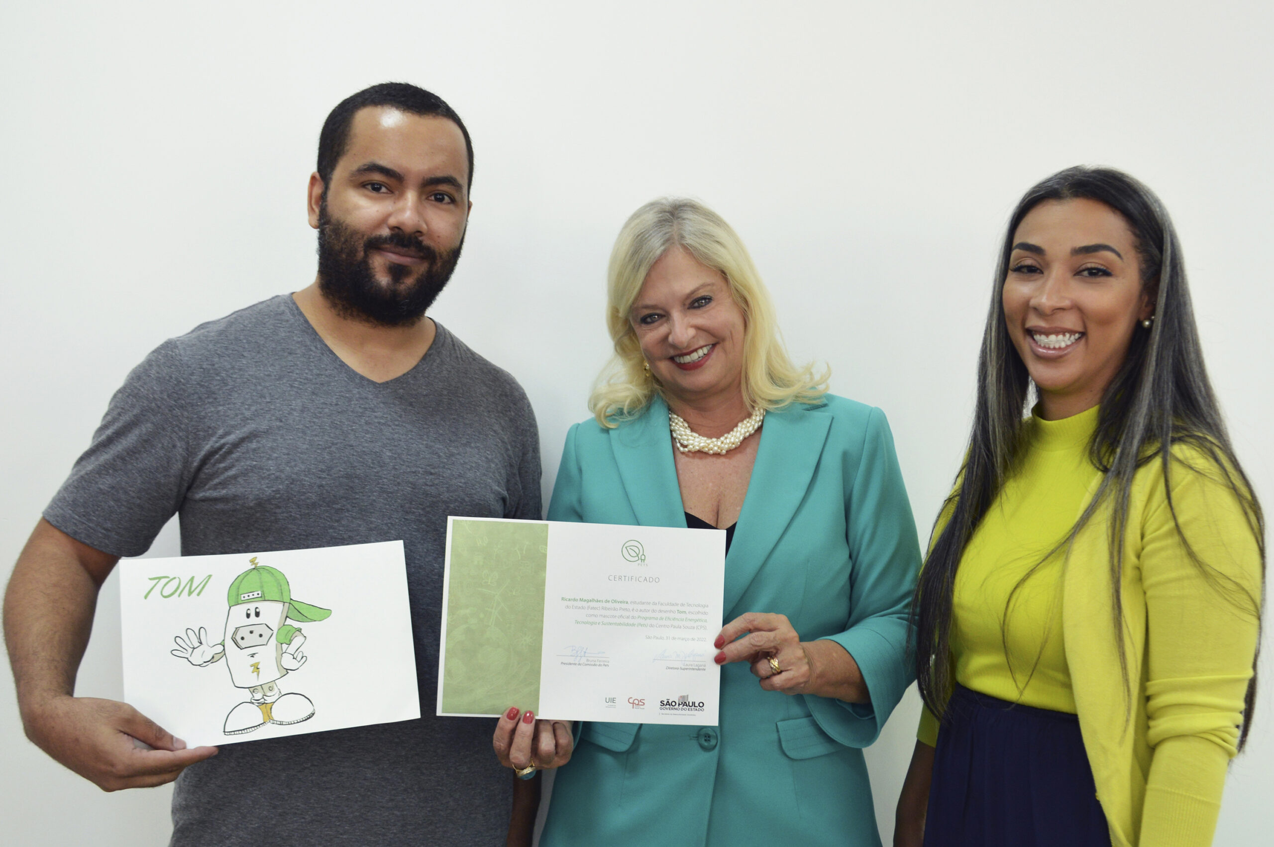 Foram premiados nesta quinta-feira (31) os participantes da iniciativa que escolheu a mascote do Programa de Eficiência Energética, Tecnologia e Sustentabilidade (Pets) do Centro Paula Souza (CPS). Estavam presentes à cerimônia de premiação a diretora-superintendente do CPS, Laura Laganá; a presidente da Comissão de Eficiência Energética e coordenadora em exercício da Unidade de Infraestrutura (UIE), Bruna Fernanda Ferreira; e os membros da comissão do Pets: Joel Leandro de Moraes Neto (UIE), Walter Kussano (UIE), Jun Suzuki (Etec Bento Quirino, de Campinas), Rafael Vitor Degani de Oliveira (Etec Antonio de Pádua Cardoso, de Batatais) e Cristina Aires Elisei (Comissão Permanente de Regime de Jornada Integral (CPRJI).