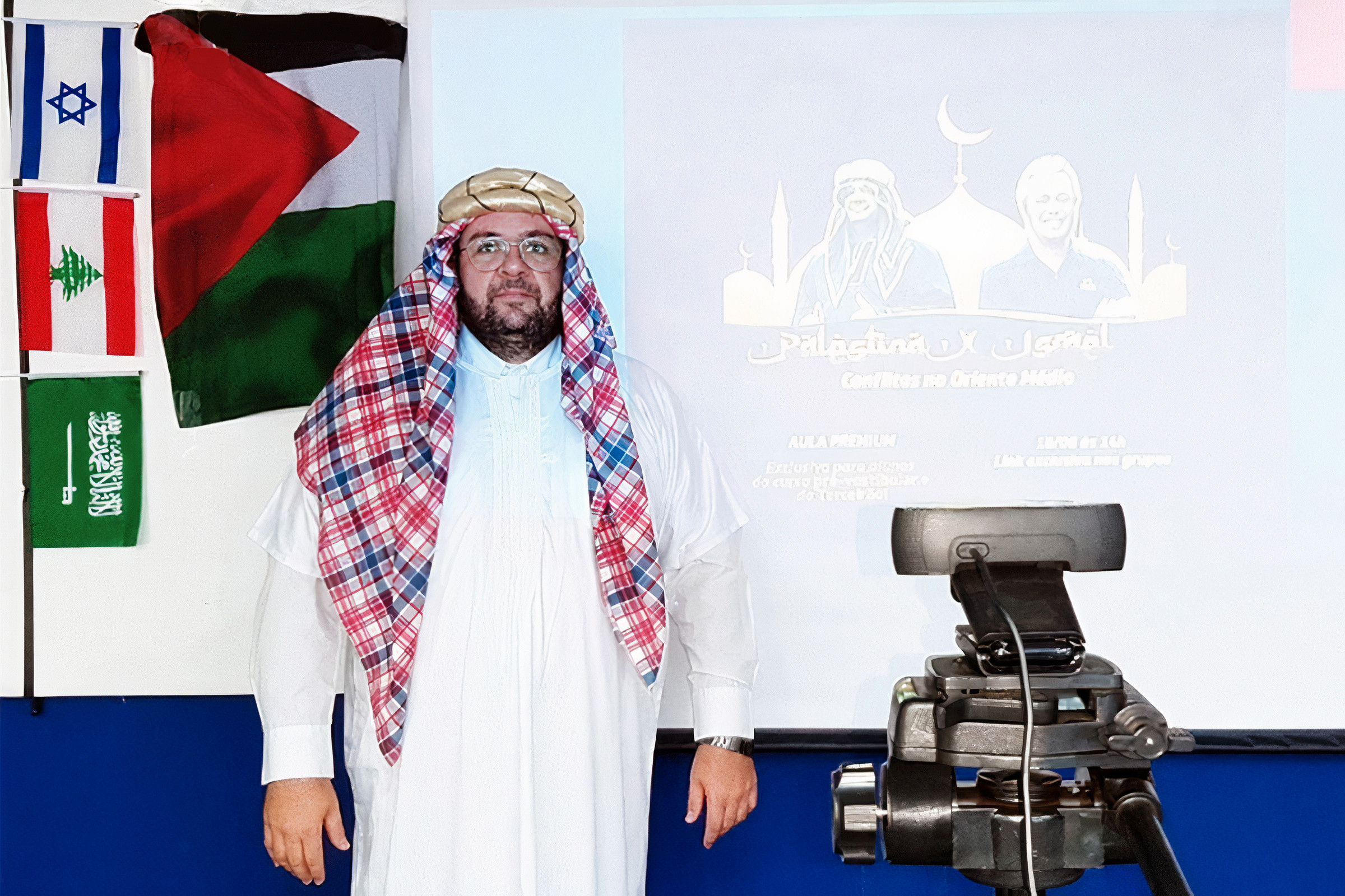Enquanto torcedores dos cinco continentes voltam os olhos para a primeira Copa do Mundo em um país do Oriente Médio, o professor de geografia Thiago Hernandes manda um recado para os estudantes: “O Catar será a bola da vez nos vestibulares”. Apreciador da cultura árabe, ele ministra aulas na Escola Técnica Estadual (Etec) Pedro D’Arcadia Neto, de Assis, e nas Faculdades de Tecnologia do Estado (Fatecs) Assis e Presidente Prudente. A região conta com forte presença de descendentes sírio-libaneses, o que serve de inspiração para suas aulas “customizadas” sobre os países árabes.