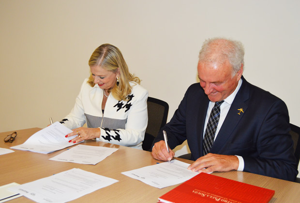 Crédito: Divulgação | Superintendente do CPS, Laura Laganá, assina o acordo com o reitor da Inholland