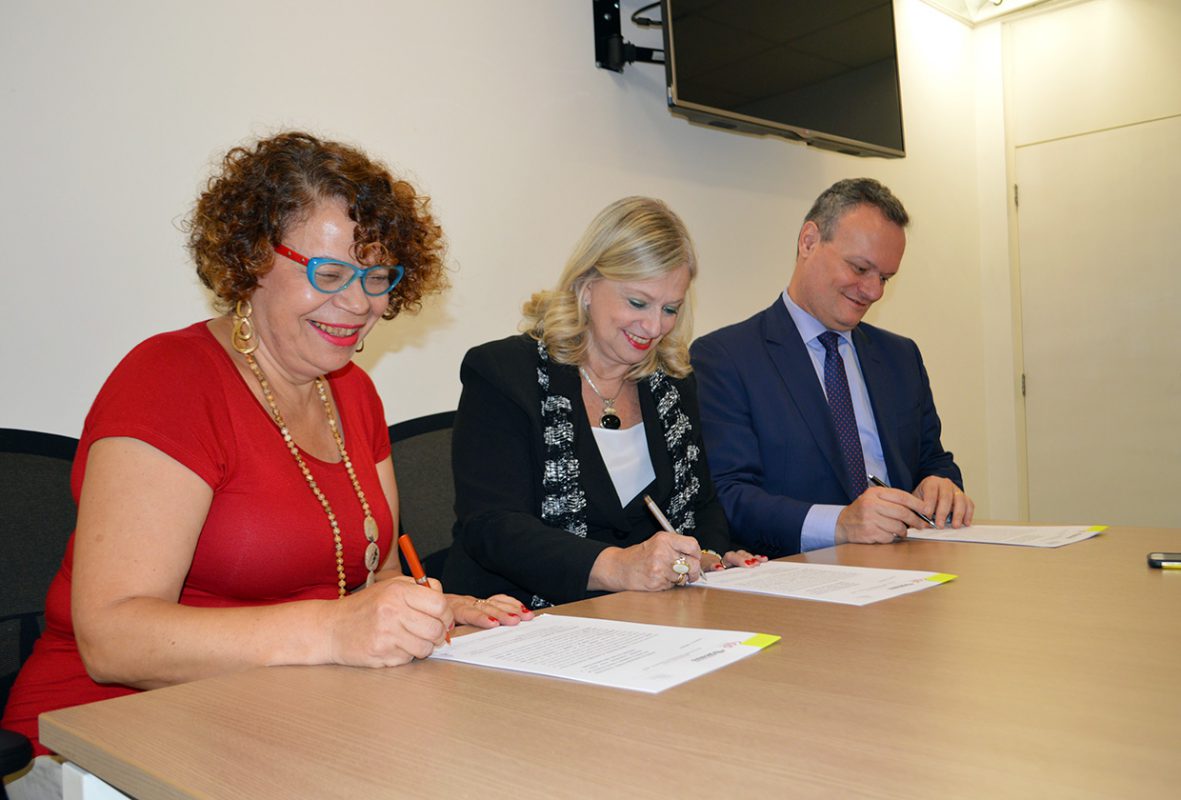 A diretora-superintendente do Centro Paula Souza (CPS), Laura Laganá, assinou nesta quarta-feira, 18, duas parcerias para capacitação de professores na área artística. Os acordos foram assinados com o assessor acadêmico da Fundação Armando Álvares Penteado (Faap), Rogério Massaro Suriani, e com a diretora administrativa da Fundação Cultural Ema Gordon Klabin, Ana Maria Odelius. “São iniciativas que trarão novas experiências para os nossos professores e contribuirão no desenvolvimento de práticas pedagógicas inovadoras com os alunos”, afirma Laura Laganá.