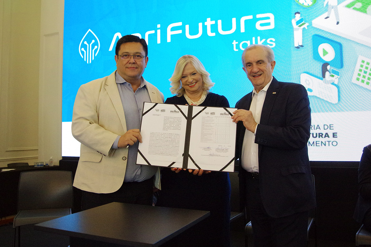 Com o objetivo de oferecer treinamentos na utilização de novas tecnologias voltadas ao agronegócio para professores e alunos de Escolas Técnicas (Etecs) e Faculdades de Tecnologia (Fatecs) estaduais, a diretora-superintendente do Centro Paula Souza (CPS), Laura Laganá, e o secretário de Agricultura e Abastecimento do Estado de São Paulo, Francisco Matturro, assinaram um convênio na tarde desta terça-feira (8). A parceria foi firmada durante o evento Agrifutura Talks, um bate-papo sobre tecnologia e inovação no setor do agronegócio, na sede da Secretaria de Agricultura, na Capital.