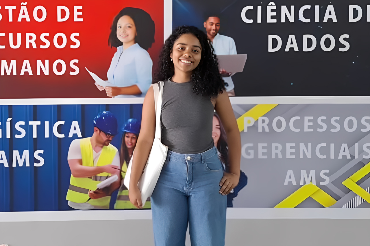 A aluna Flávia Alessandra, da Fatec Baixada Santista, investiga conexão entre hábitos acadêmicos e sintomas de burnout l Foto: Divulgação