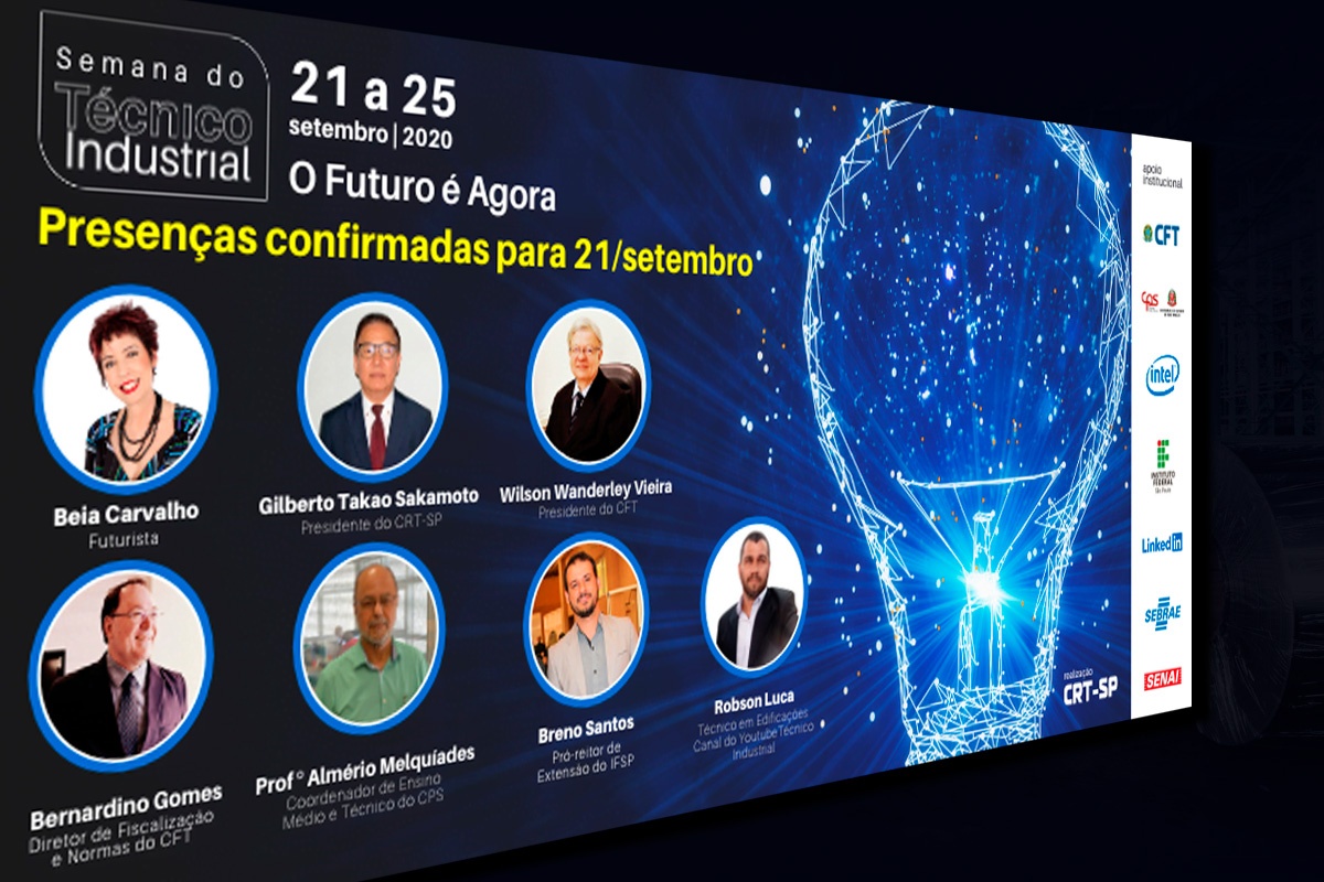 O Centro Paula Souza (CPS) participa da programação da Semana do Técnico Industrial, organizada pelo Conselho Regional dos Técnicos Industriais do Estado de São Paulo (CRT-SP). Sob o tema O Futuro é Agora, o evento online começa nesta segunda-feira (21) e segue até sexta (25) com uma série de palestras e debates gratuitos sobre assuntos relacionados à inovação e ao uso de novas tecnologias em sintonia com a atuação dos profissionais técnicos. O encontro é uma homenagem ao Dia do Técnico Industrial, celebrado em 23 de setembro, e será transmitido por YouTube e Facebook.