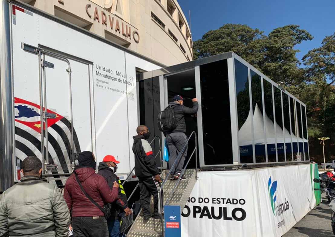 Carreta do Via Rápida fornece informações sobre manutenção de motocicletas e protocolos de prevenção à Covid-19; evento do Detran.SP ocorre nesta quarta (21) e quinta-feira (23), no Pacaembu, na Capital
