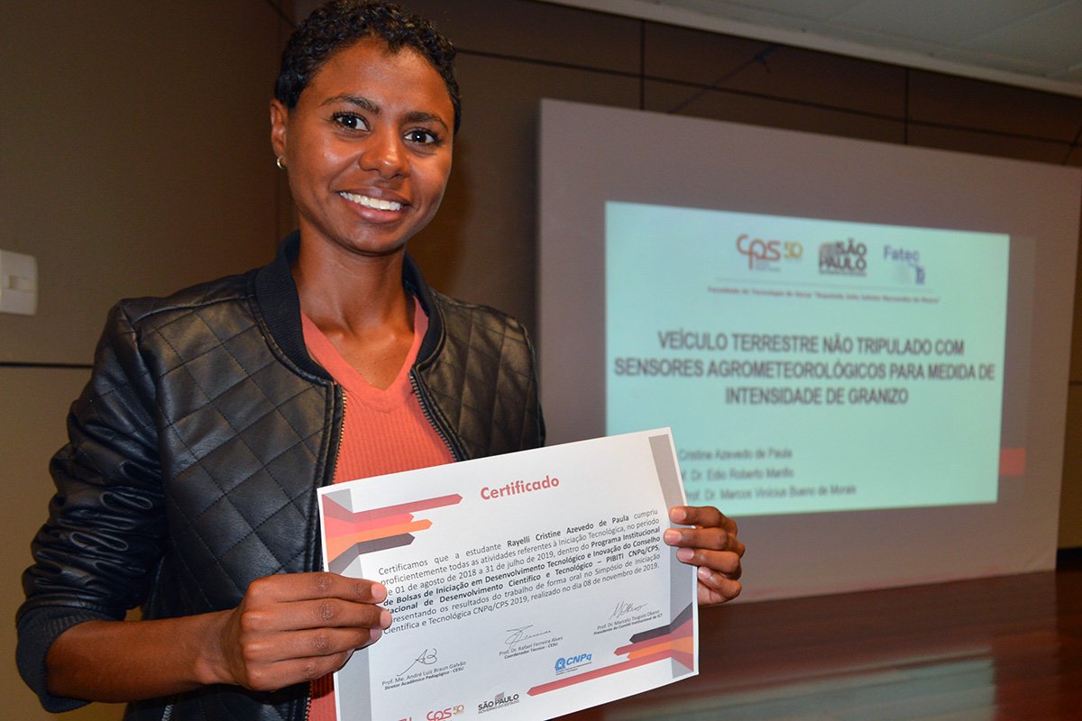 Estudante da Fatec Garça, Rayelli de Paula apresentou projeto de veículo que mede intensidade de chuvas de granizo l Foto: Divulgação