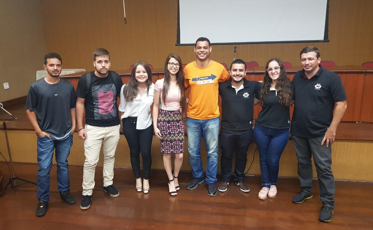 Danilo (de laranja), professor Antonio Pepece (último à direita) e parte dos estudantes fundadores da InterGestão Jr l Foto: Divulgação