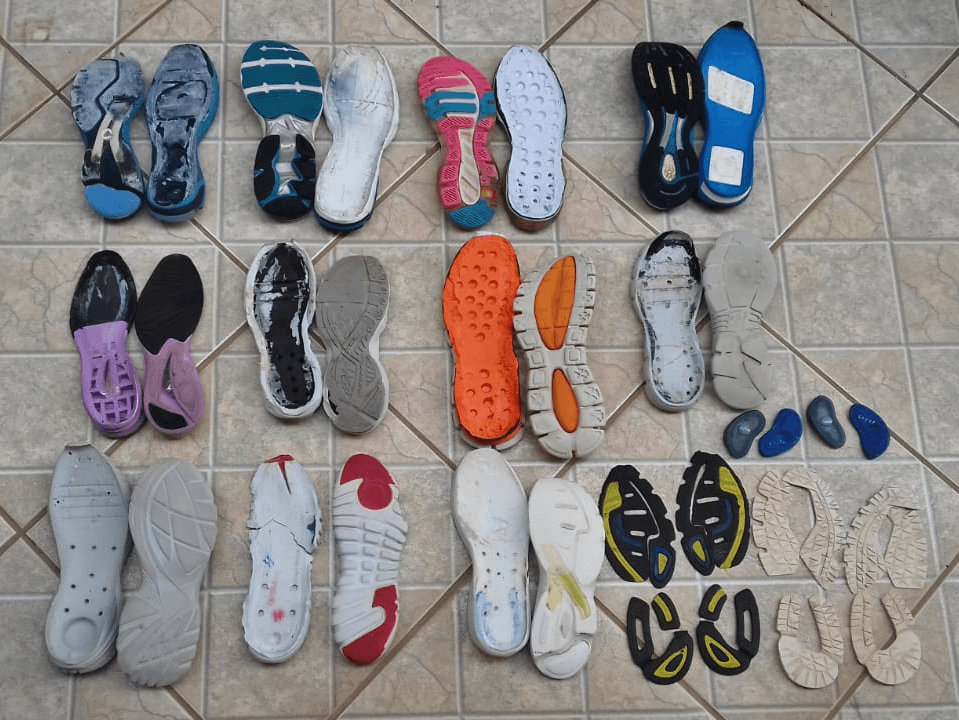 Um dos projetos apresentados na competição propôs reaproveitamento de solados de tênis para confecção de tatames| Foto: Divulgação