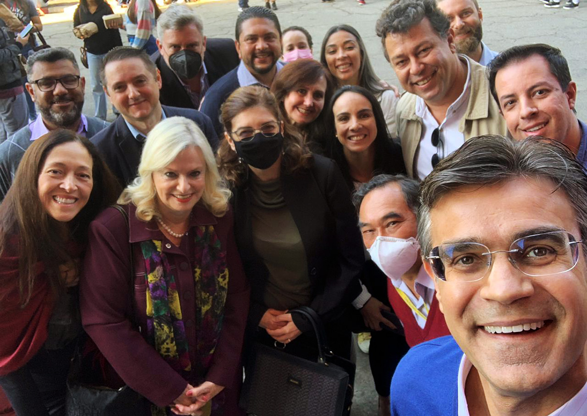 Rodrigo Garcia celebra bonificação ao lado da diretora-superintendente Laura Laganá e servidores do CPS | Foto: Divulgação