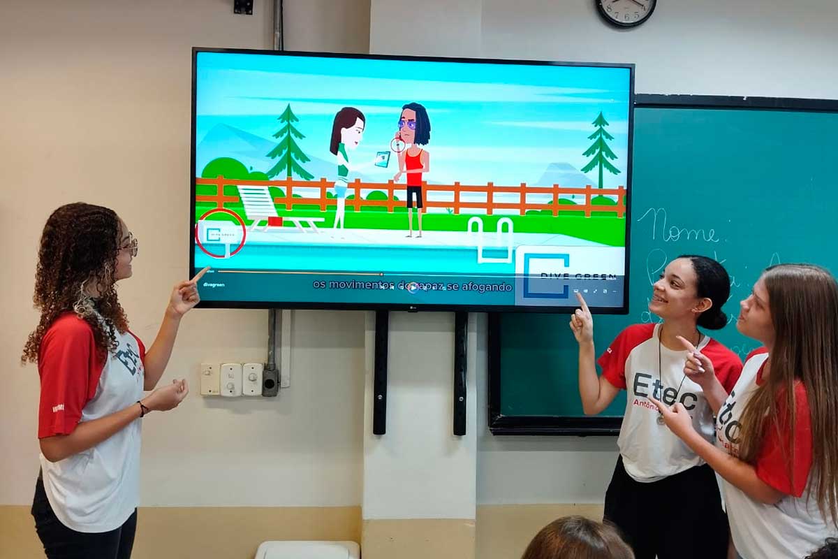 Alunas apresentam vídeo do projeto de dispositivo que previne afogamentos em piscinas l Foto: Divulgação