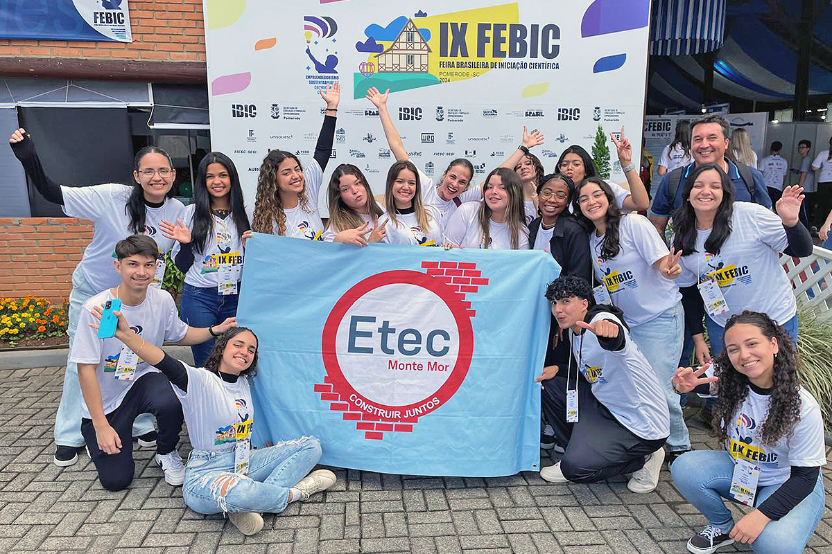 Alunos da Etec de Monte Mor na nona edição da Feira Brasileira de Iniciação Científica, em Santa Catarina l Foto: Divulgação