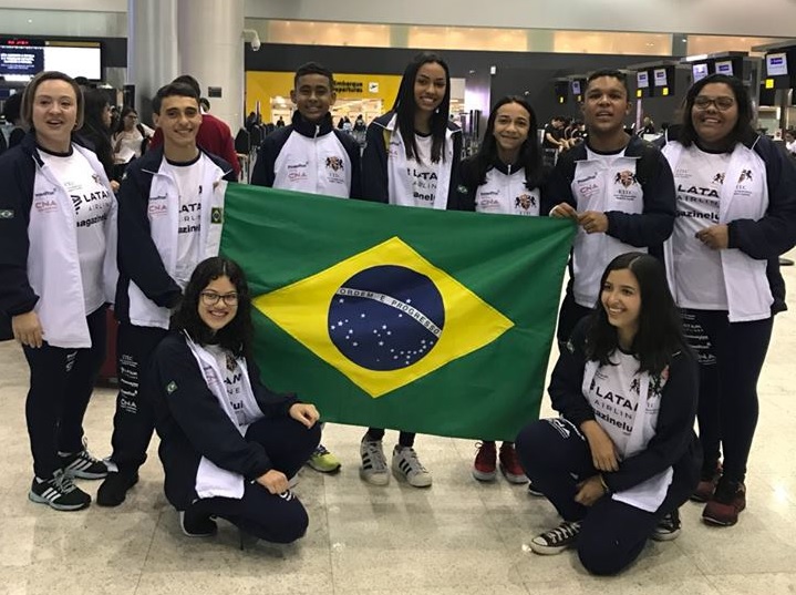 Barbara Damasceno, Emily da Silva, Esther Gomes, Felipe da Silva, Felipe Souza, Ian Finotto e Joice de Melo foram selecionados para participar do evento ao conquistarem medalhas de ouro e prata na etapa nacional da Olimpíada Internacional Matemática Sem Fronteiras. As professoras Erica Schmidt e Isabela Pinheiro acompanham os alunos.