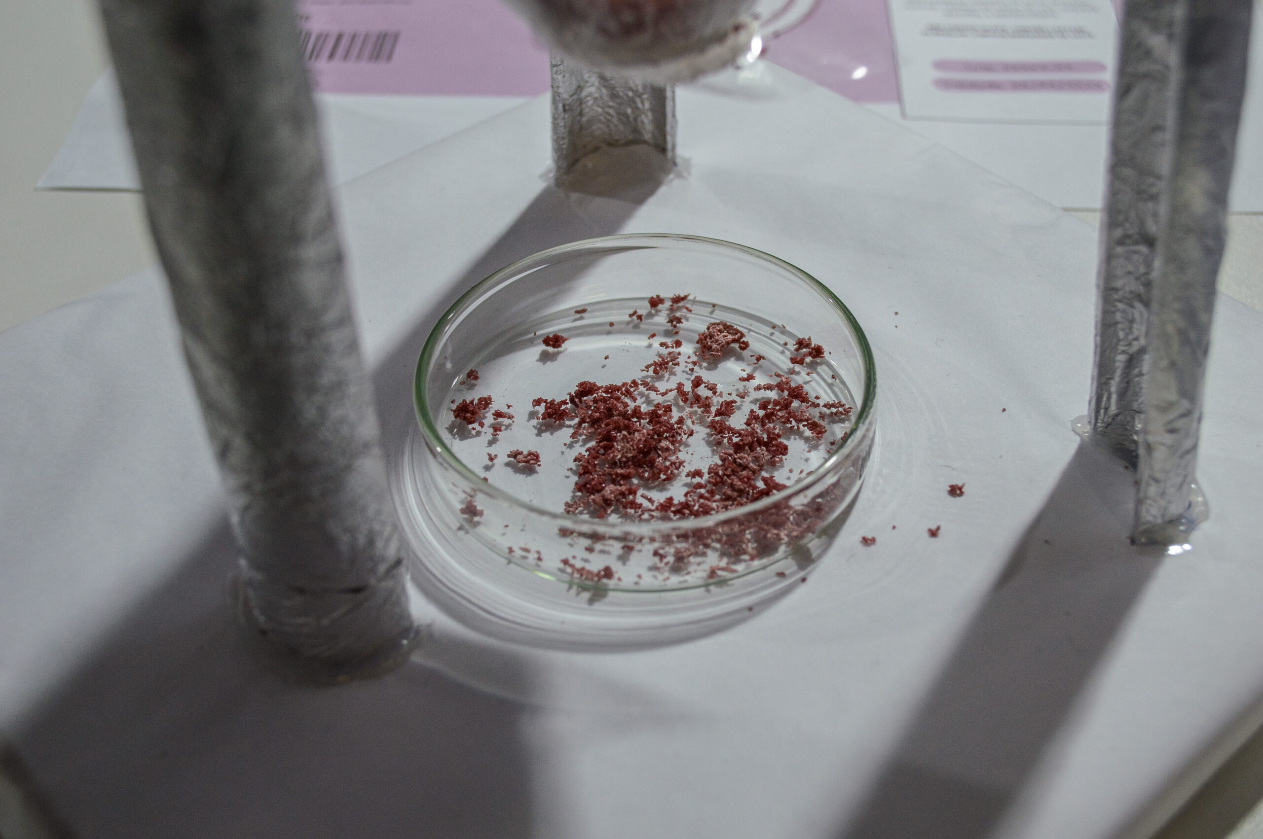 “Um dos resíduos da produção de vinho é o bitartarato de potássio – uma substância sem sabor relevante, mas com importante potencial corante. Então surgiu a ideia de substituir corantes sintéticos, geralmente derivados do petróleo, por uma alternativa mais natural”, explica o estudante João Pedro Borges Veloso.