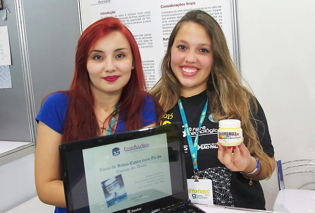Brenda Lúcia Ribeiro e Bruna Mariana Morais de Oliveira, técnicas em Química pela Escola Técnica Estadual (Etec) de Suzano, no município paulista da Região do Alto Tietê, encontraram uma maneira mais barata e sustentável de produzir tintas: usando cascas de ovos. A pesquisa das estudantes girou em torno do carbonato de cálcio, uma substância em comum entre o produto industrializado e a casca do ovo de galinha.