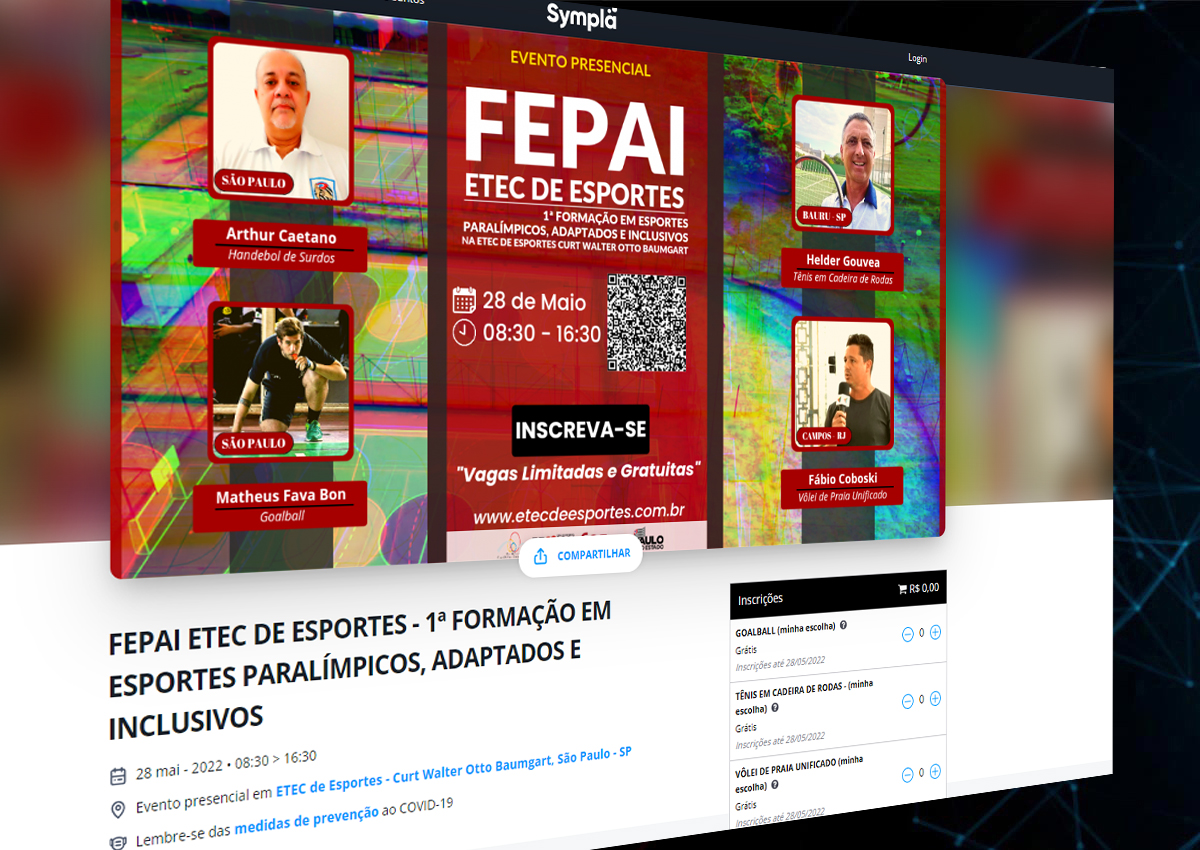 A Escola Técnica Estadual (Etec) de Esportes Curt Walter Otto Baumgart está com inscrições abertas para a primeira edição da Formação em Esportes Paralímpicos, Adaptados e Inclusivos (Fepai), que ocorre em 28 de maio, na sede da escola, localizada na zona norte da Capital. Alunos do curso técnico de Organização Esportiva da Etec, estudantes e profissionais de educação física devem se inscrever pelo site até o dia do evento ou até as 200 vagas serem preenchidas.
