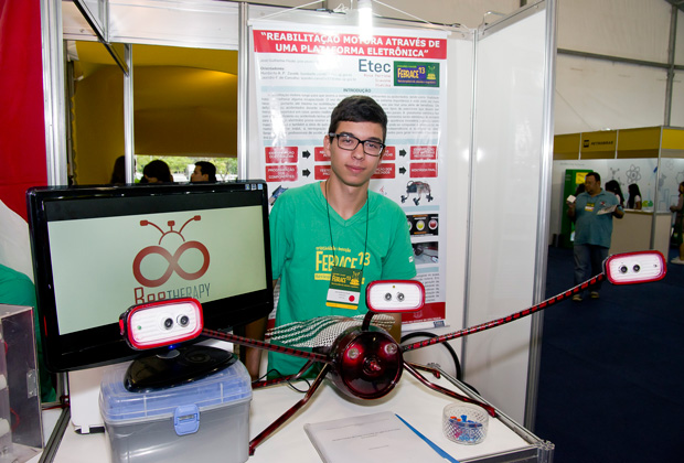 O estudante desenvolveu um jogo que pode ser usado por fisioterapeutas para tratar pacientes em processo de reabilitação motora ou neurológica. O equipamento, elaborado com materiais recicláveis, possui formato de abelha e é voltado especialmente para crianças. A cada sinal luminoso emitido pelo aparelho, o paciente deve movimentar o braço. O jogo, que possui fases e velocidades distintas, já está sendo utilizado pela Associação de Pais e Amigos dos Excepcionais (Apae) de Itatiba.