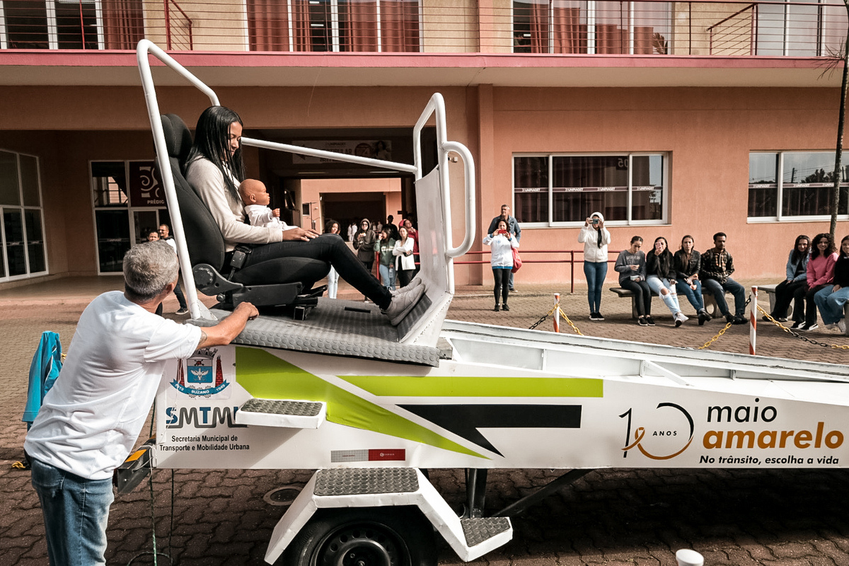 A programação inclui uma conversa com os estudantes e uma experiência prática com um simulador de impacto. Desenvolvido pela própria pasta, o equipamento é capaz de reproduzir, de forma segura, a força gerada por uma colisão a aproximadamente oito quilômetros por hora, demonstrando o efeito do empuxo sobre os ocupantes de um veículo e a importância do uso correto do cinto de segurança.