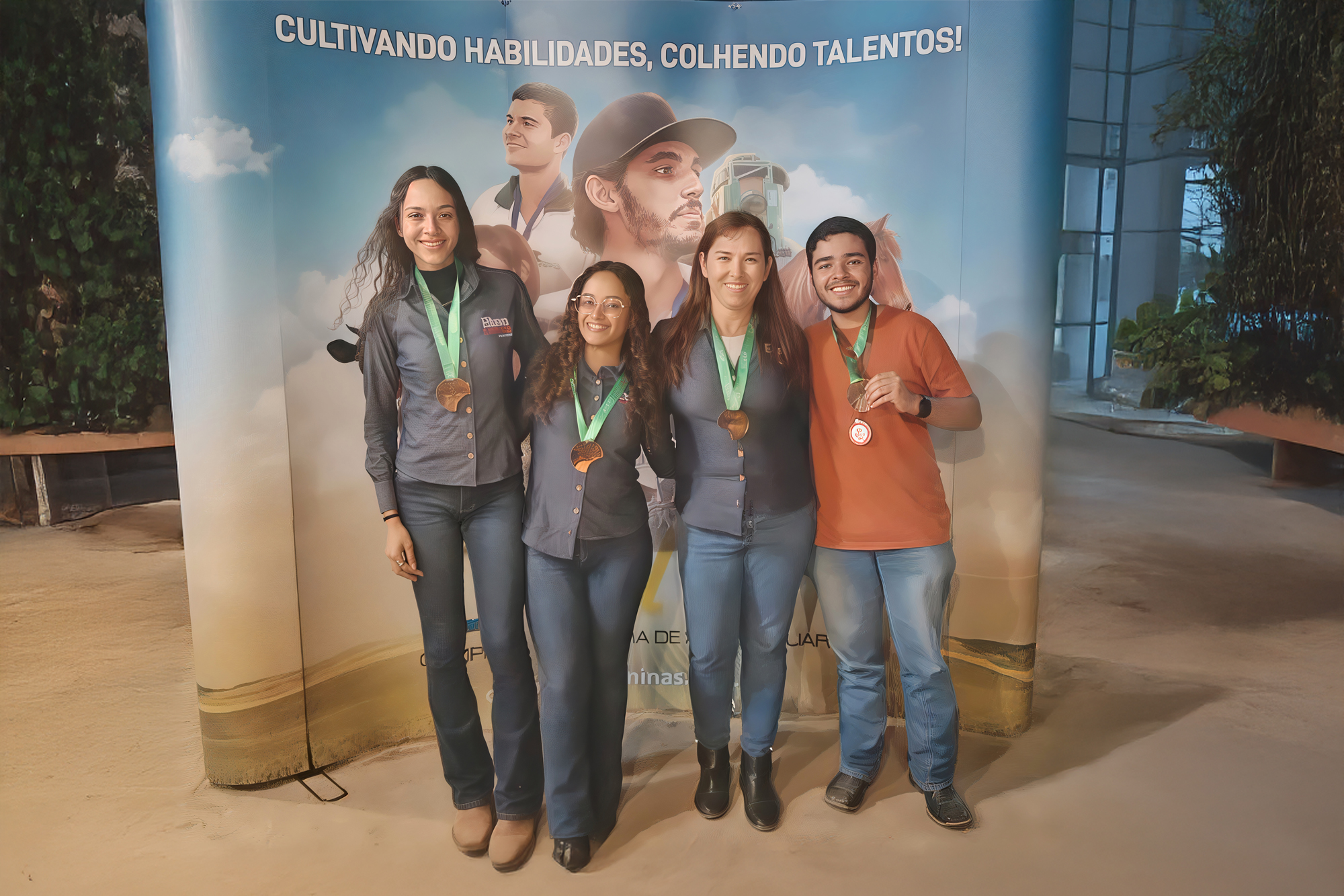 Orientados pela professora Giane da Silva Conhalato, Ana Carolina Marcelani Pereira, Ana Clara Silva de Souza e Gustavo Luiz da Silva passaram por duas provas – teórica e prática – para conquistar o prêmio. “Para nossa equipe, foram sorteadas as provas de pós-colheita, calda de pulverização e inseminação artificial. Nos esforçamos e estudamos para as provas com a ajuda de nossos professores”, explica Ana Clara.