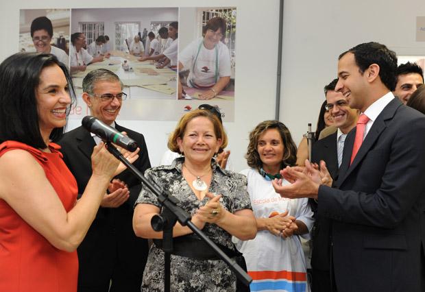 Lu Alckmin, Clara Magalhães e o secretário Paulo Barbosa na inauguração da Escola de Moda. / Foto – Divulgação.