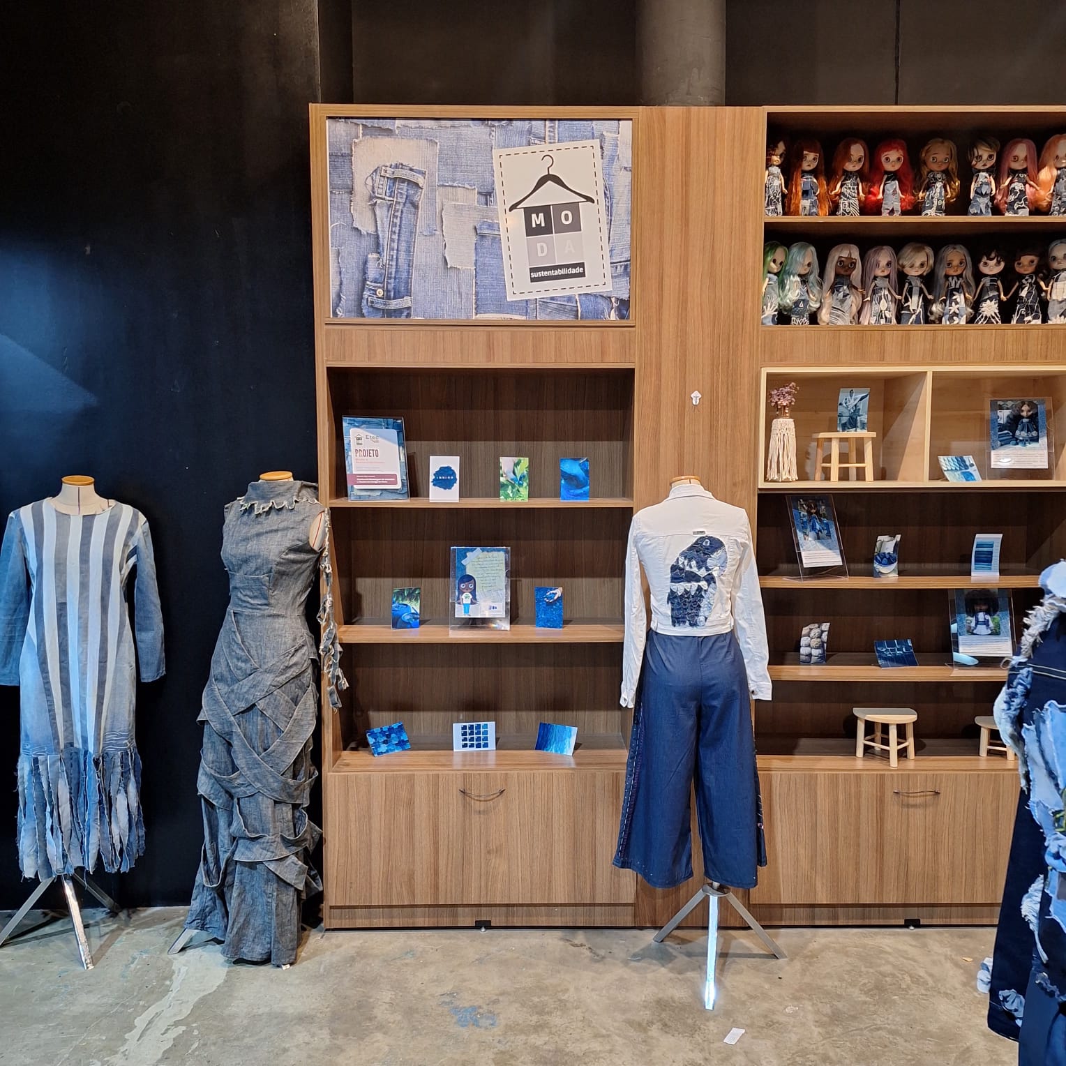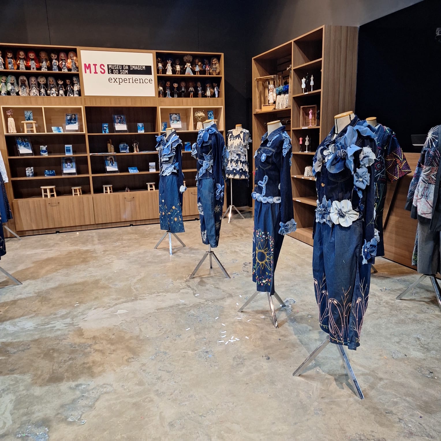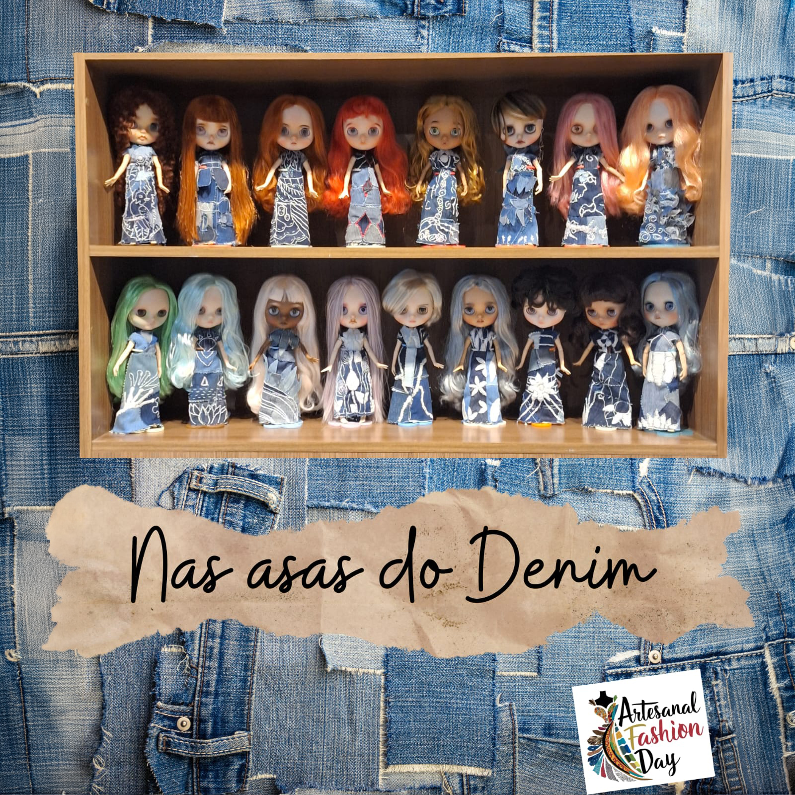 Parte da produção é de criações em escala 1/6 (o tamanho de uma boneca Blythe, cerca de 28cm) com resíduos têxteis de jeans. “Essa é uma oportunidade para os estudantes conhecerem trabalhos de moda em que o fazer manual é protagonista”, avalia o professor, referindo-se ao grande número de profissionais de moda e de artesanato participantes.