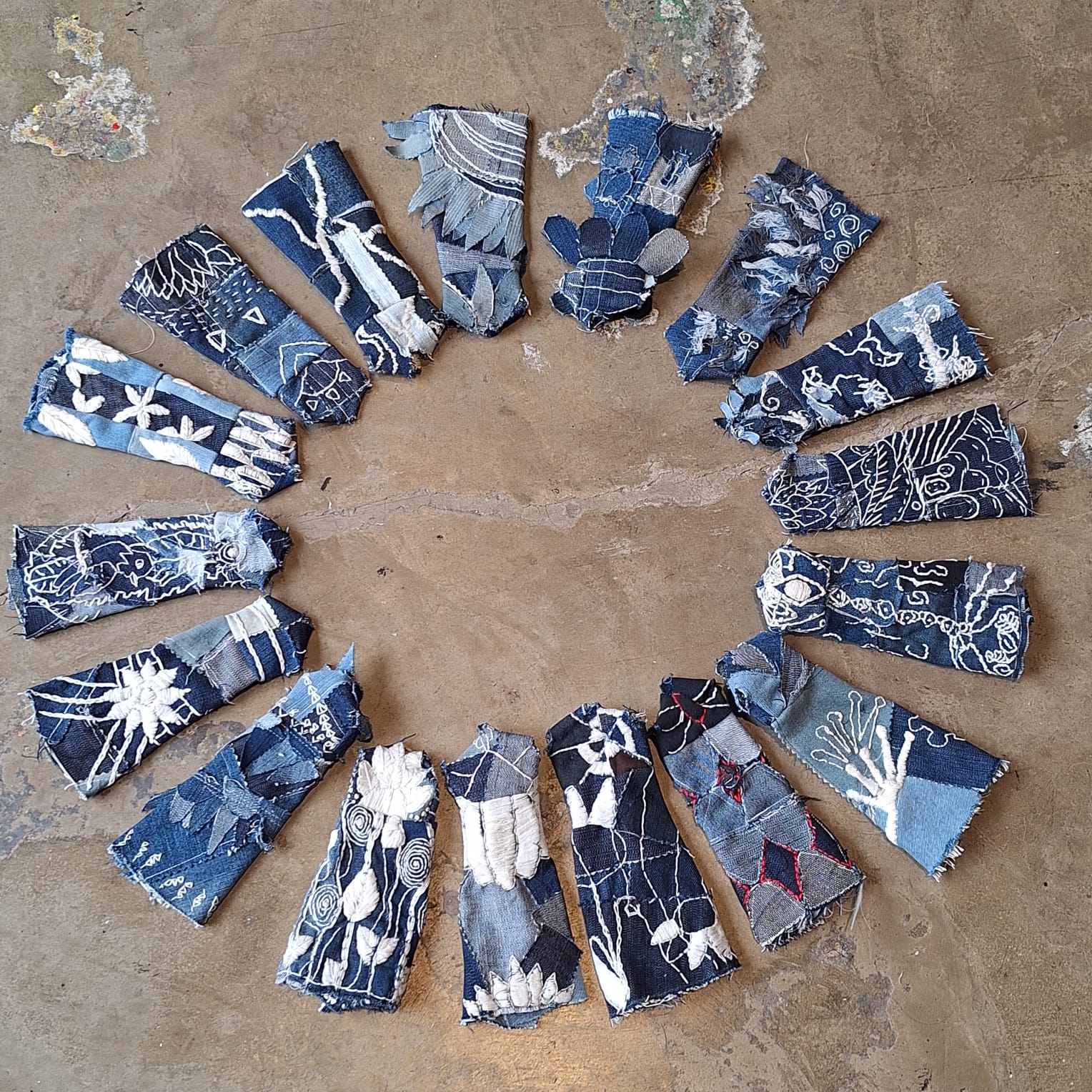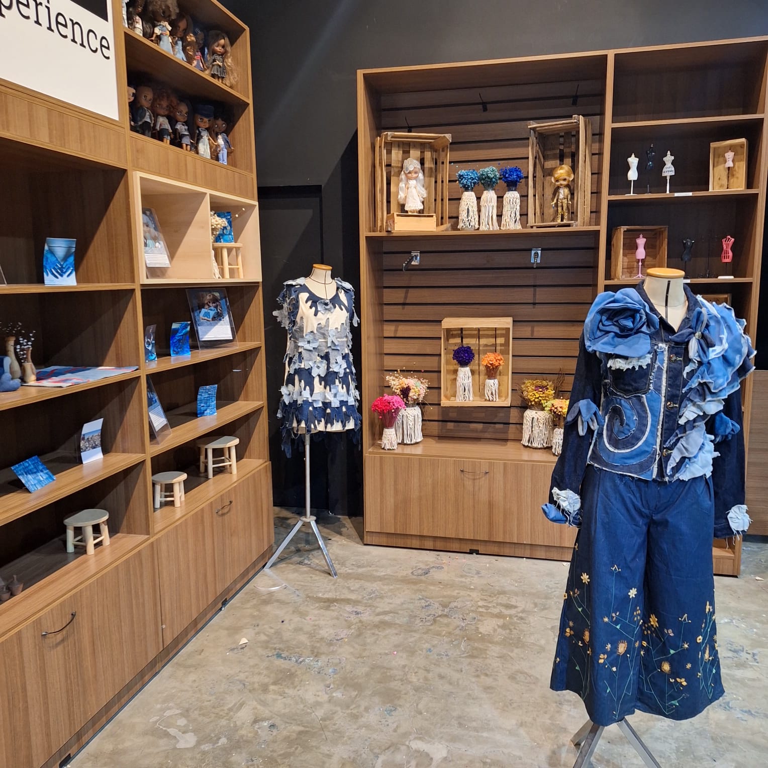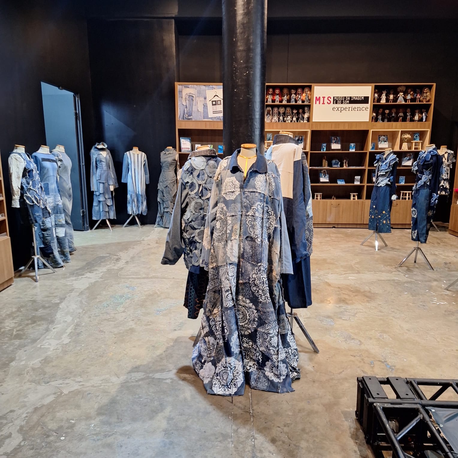 Parte da produção é de criações em escala 1/6 (o tamanho de uma boneca Blythe, cerca de 28cm) com resíduos têxteis de jeans. “Essa é uma oportunidade para os estudantes conhecerem trabalhos de moda em que o fazer manual é protagonista”, avalia o professor, referindo-se ao grande número de profissionais de moda e de artesanato participantes.