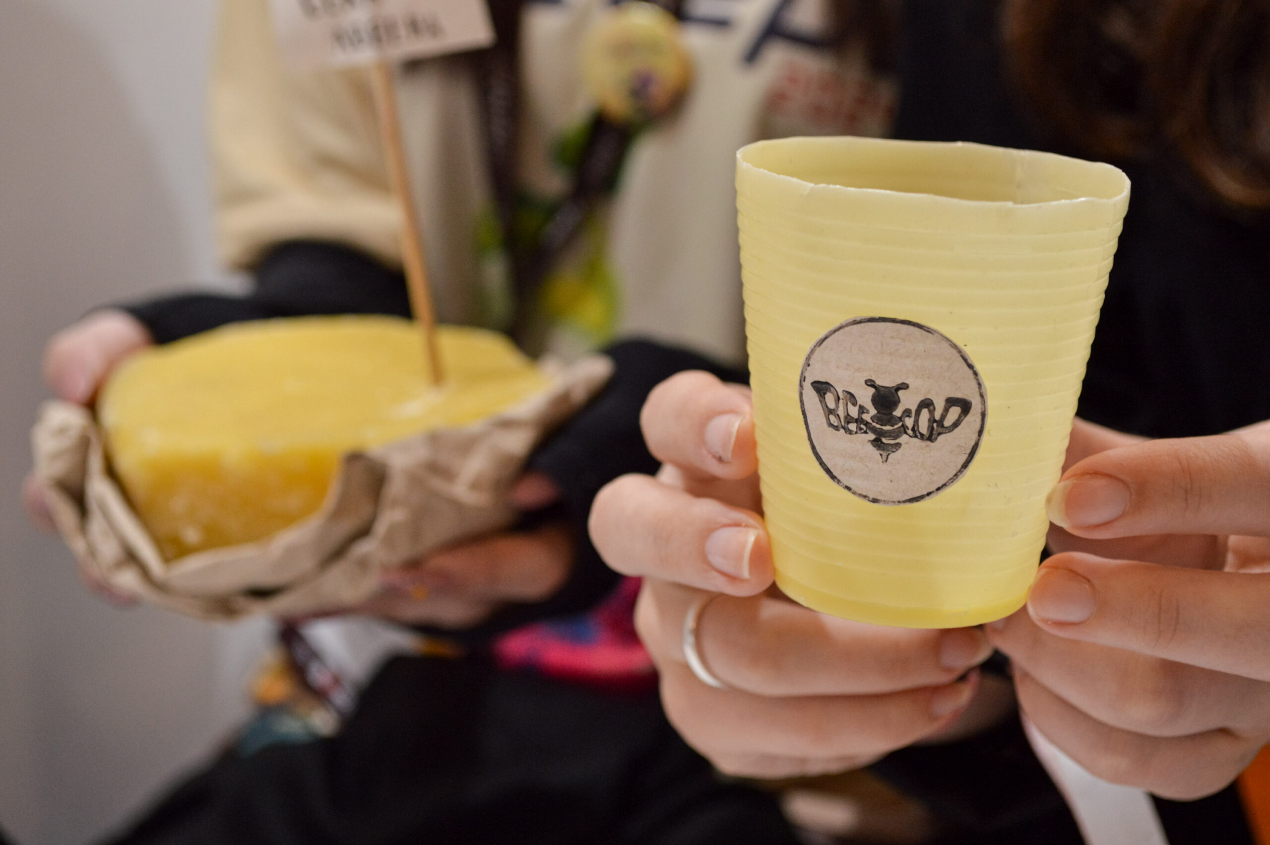 Um dos destaques da exposição é o projeto Beecop – copo biodegradável à base de cera de abelha e amido de milho, que foi finalista da 15ª Feira Tecnológica do Centro Paula Souza (Feteps), em agosto. Desenvolvido pelas alunas Isabela Sousa, Vitória Monteiro e Laura Dias, o trabalho foi orientado pelas professoras Ester Menezes e Tatiana Nunes.