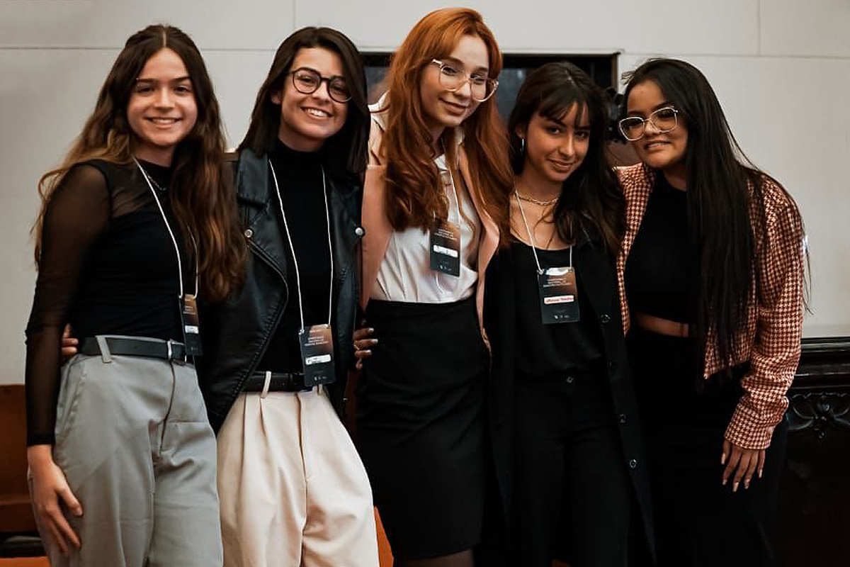 A partir da esquerda: Valentine, Beatriz, Jenifer, Yasmim e Julia, no Campeonato Nacional de Debates Escolares | Foto: Divulgação