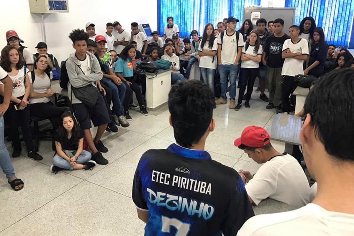 Estudantes de escola municipal interagem com alunos da Etec de Pirituba durante visita monitorada à unidade | Foto: Divulgação