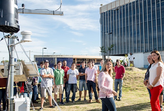 Crédito: Raimundo Nascimento | Alunos e professores observam a instalação da estação meteorológica na Fatec Itu